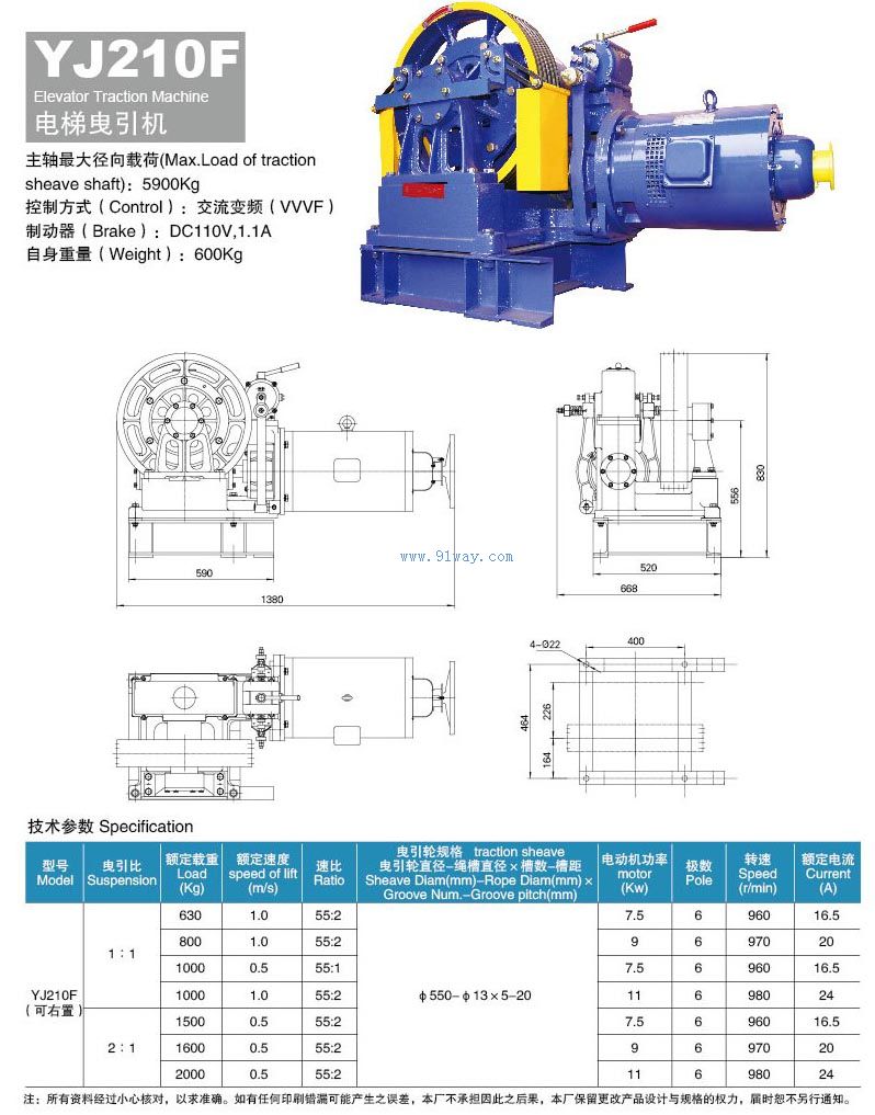 YJ210F(800Kg~1000Kg,0.5m/s~1.0m/s)
