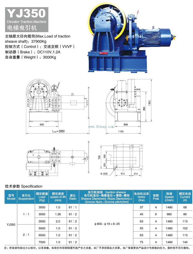 YJ350(3500-7000Kg,1.0-2.0m/s)交流變頻曳引機(jī)
