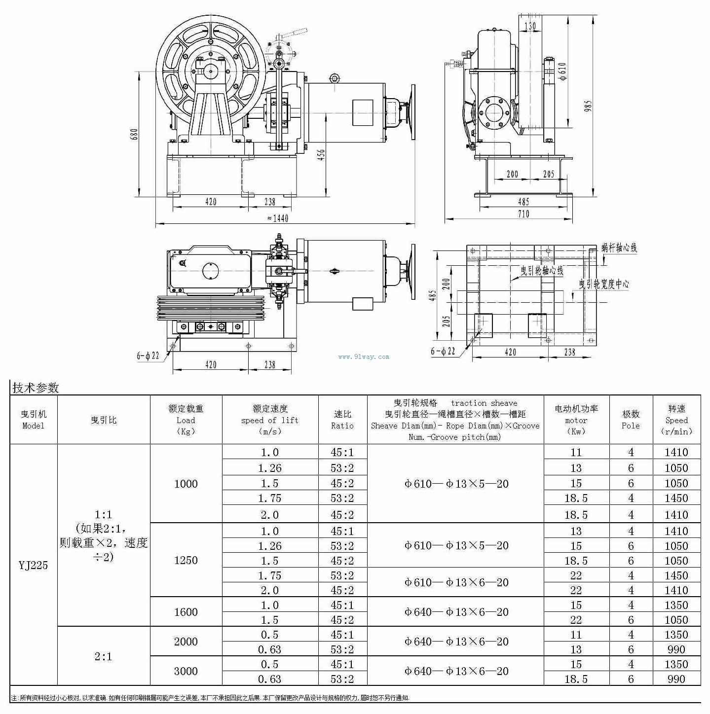 | 產(chǎn)品名稱: | YJ225(1000-2500kg,1.0-2.0m/s)交流變頻曳引機(jī) | |||||