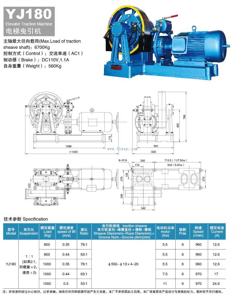 YJ180(800-2000Kg,0.35-0.5m/s)交流變頻曳引機