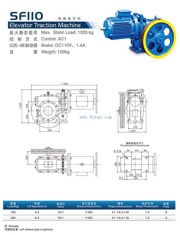 SF110系列電梯曳引機