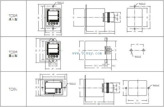 T2DR,T3DR,T4DR,T2DL,T3DL,T4DL數(shù)位式限時繼電器外觀尺寸圖