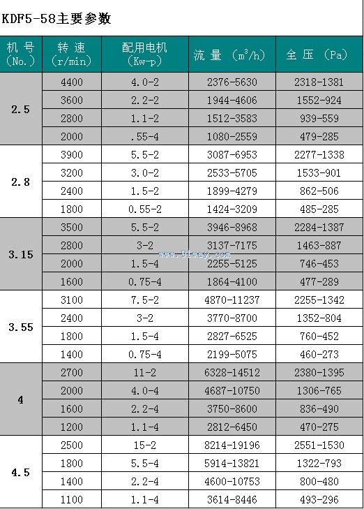 | 產(chǎn)品名稱: | KDF5-58型離心通風機 | |||||