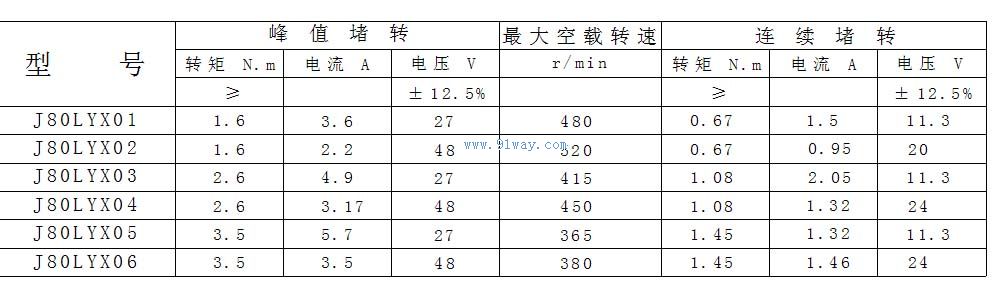 J80LYX系列稀土永磁直流力矩電動(dòng)機(jī)技術(shù)參數(shù):