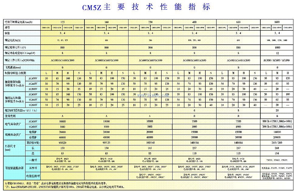 CM5Z系列斷路器為智能型斷路器,有125A、160A、250A、400A、630A、1600A六個(gè)殼架,電流從12.5A~1600A。