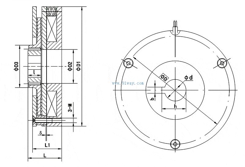 | 型號 | d | D | D1 | D2 | D3 | b | h | I | L | L1 | M | δ |