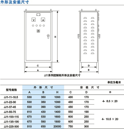 JJ1系列自耦減壓起動控制柜適用于交流50HZ(或60HZ),額定工作電壓為380V或660V、功率為11KW~300KW的三相鼠籠型感應電動機作降壓起動,并可加速電動機至額定轉速和人為停止電動機。對電動機具有過載、短路等保護,對自耦變壓器裝有起動時間的過載保護