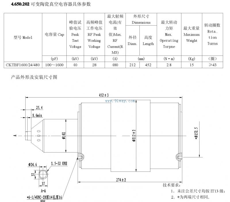 CKTBF1600/24/480風(fēng)冷型可變陶瓷真空電容器