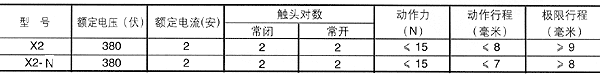 適用范圍 X2系列行程開關用于交流50Hz,電壓至380伏的電路中作行程控制限位之用。 X2系列行程開關型號及其含義 X2系列行程開關主要技術參數
