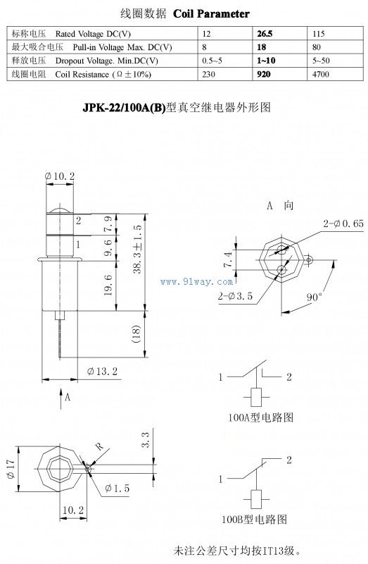 JPK-22/100A型陶瓷真空繼電器