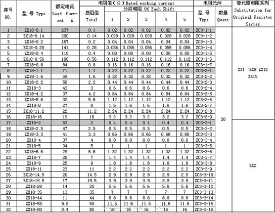 ZX18系列合金板形電阻器型號及其含義