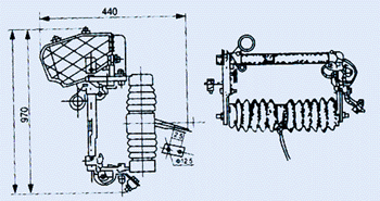 RW10-10F系列跌落式熔斷器外形及安裝尺寸