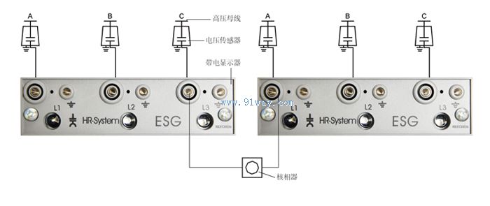 核相前,首先要確保高壓開關(guān)柜內(nèi)部配線正確,即裝配的電壓傳感器與帶電顯示器之間的連接導(dǎo)線的相序要正確。當(dāng)兩個高壓電源正常供電,在確認(rèn)各電源開關(guān)柜上面的帶電顯示器正常指示后,方可進行以下操作: