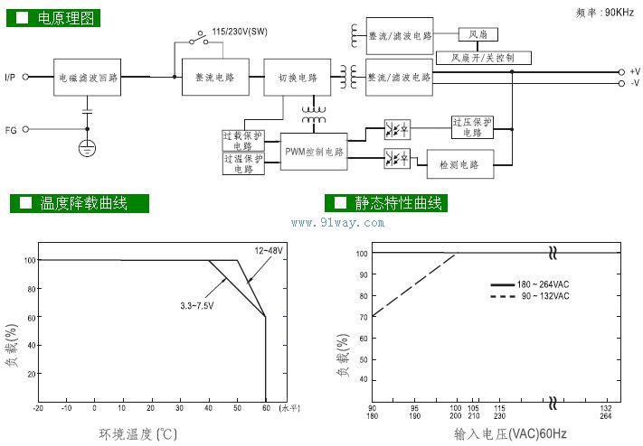 交流輸入電壓范圍…由開關選擇90~132VAC/180~264VAC