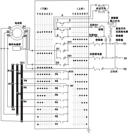 2、在多電動機驅(qū)動系統(tǒng)中,終點開關(guān)和其他控制器觸頭“3”、“4”、“5”接到此電中內(nèi)。