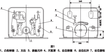 1、凸輪轉鼓。2、支柱3、接觸元件4、滅弧罩5、定位彈簧6、定位杠桿7、定位棘輪