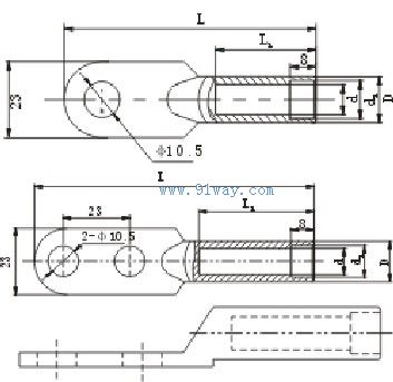 注:DT-D系列銅端子主要用于接地棒等裝置與帶絕緣層的銅接地線連接使用,DT2 -D系列為雙孔型。