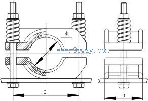 | JGH-01 | φ55~65 | 65 | 130 | 75 | 2-M12 | 高壓單芯撓性電纜固定夾 |