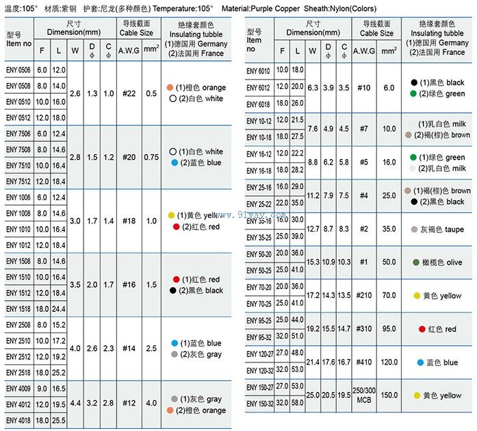 ENY阻燃型尼龍絕緣套管形端子