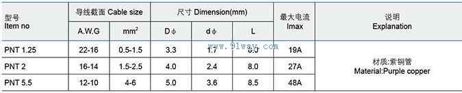 PNT型無絕緣套短形中間平行端子