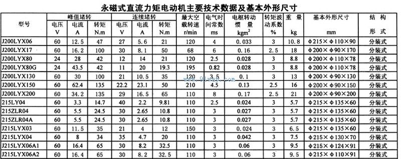 J215LYX03,J215LYX04,J215LYX06A2,J215LYX06A1系列永磁式直流力矩電動機
