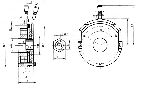 DZS2系列電磁失電制動器屬干式,必須在無油狀態(tài)下工作,以免影響力矩;制動器在安裝時,直接通過安裝螺釘將制動器固定在電機后端蓋或設備的固定板上,無需調(diào)整工作氣隙;當氣隙δ超過最大工作氣隙時,應通過調(diào)整氣隙墊片將氣隙重新調(diào)整到規(guī)定值。該制動器安裝方式為軸向水平。