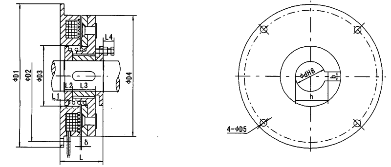 d | D1 | D2 | D3 | D4 | D5 | L | L1 | L2 | L3 | L4 | b | h | δ |
