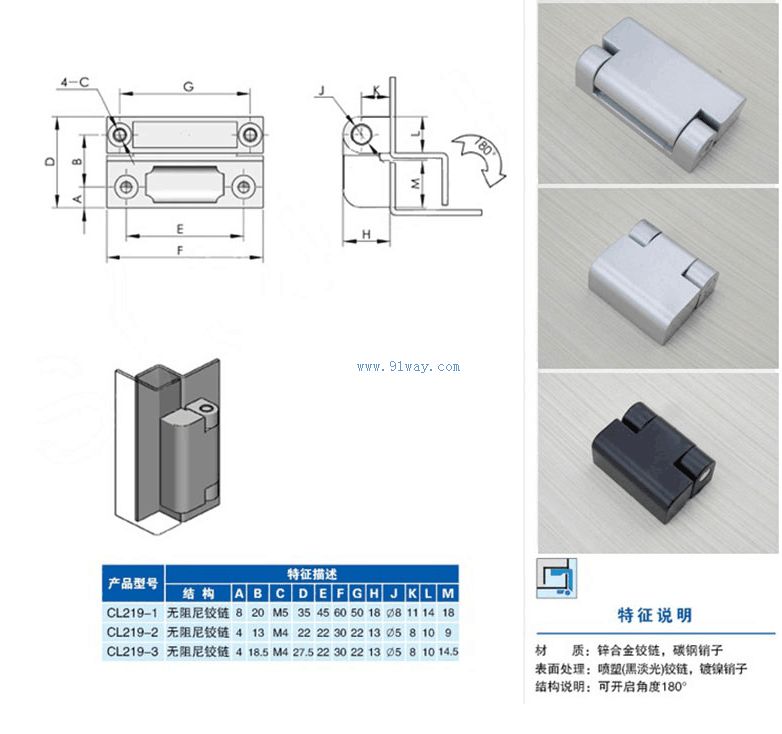 材 質(zhì):鋅合金鉸鏈,碳鋼銷(xiāo)子。