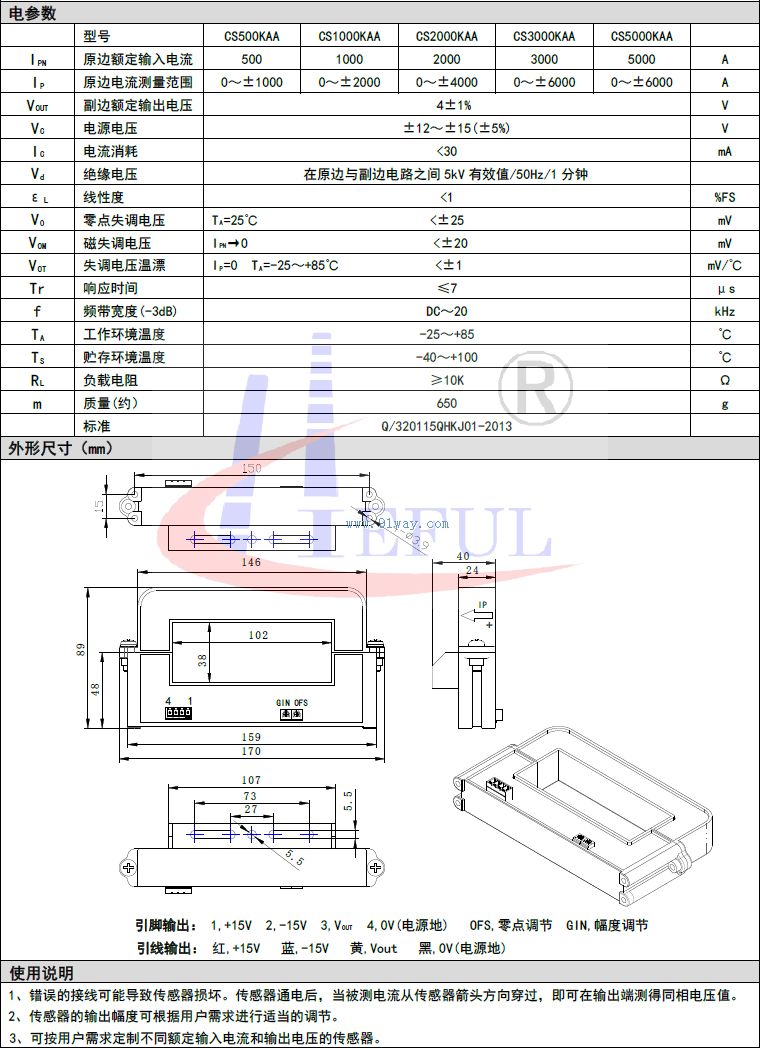 CS5000KAA系列開環霍爾電流傳感器