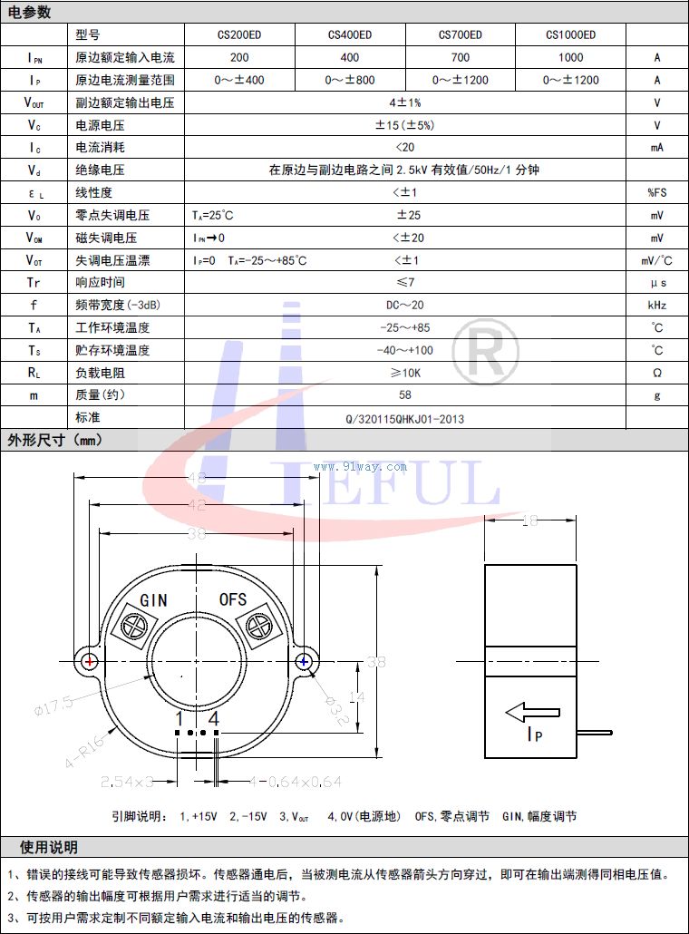 CS1000ED系列開環(huán)霍爾電流傳感器