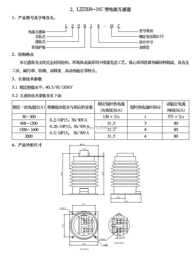 LZZBJ9-35C型戶內(nèi)澆注電流互感器
