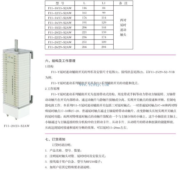 | 產(chǎn)品名稱: | F11-Y系列延時(shí)速動輔助開關(guān) | |||||