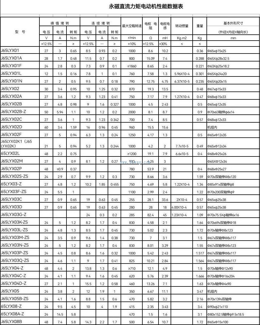 J65LYX系列永磁直流力矩電動機(jī)