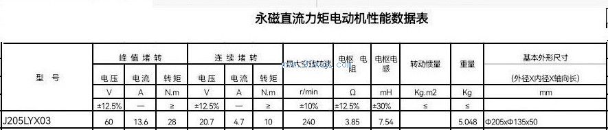 J205LYX03型永磁式直流力矩電動機