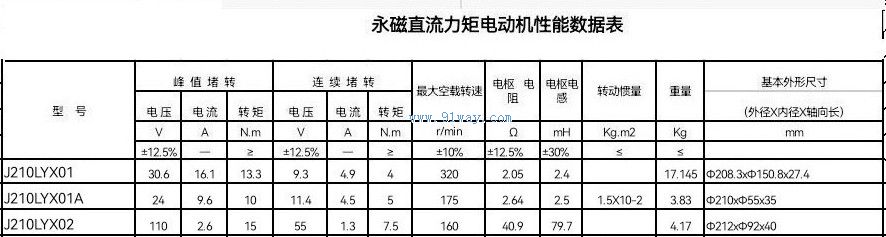 J210LYX01,J210LYX02型永磁式直流力矩電動機