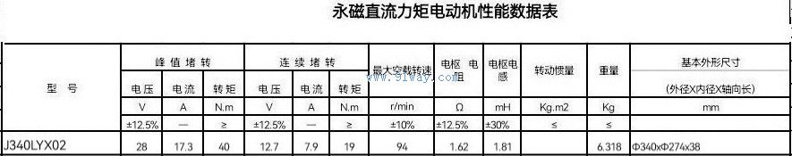 J340LYX02型永磁式直流力矩電動機