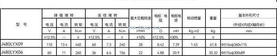J480LYX06型永磁直流力矩電動機