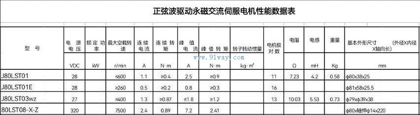 J80LST系列正弦波驅(qū)動永磁交流伺服電機J80LST01,01E,03wz,80LST08-X-Z