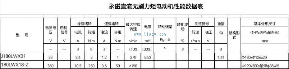 180LWX18-Z型永磁直流無刷力矩電動機