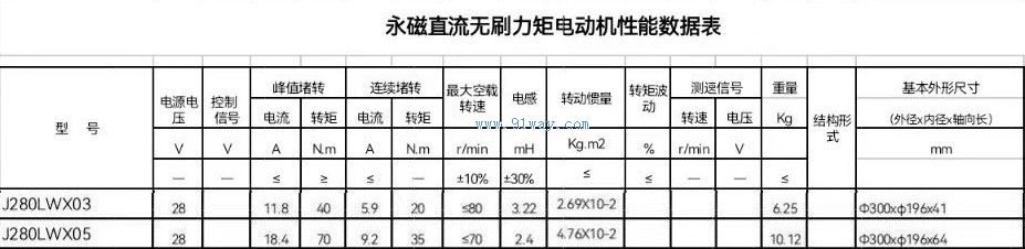 J280LWX03,J280LWX05型無刷直流力矩電動機