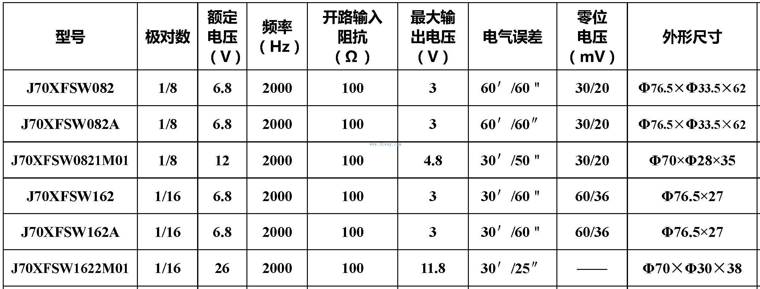 J70XFSW系列無刷旋轉變壓器J70XFSW82,J70XFSW82A,J70XFSW0821M01,J70XFSW162,J70XFSW162A,J70XFSW1622M01