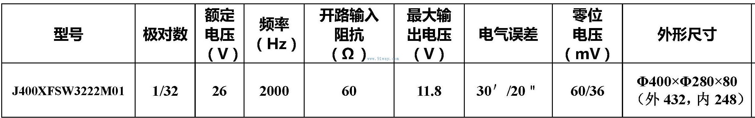 J400XFSW3222M01型無刷旋轉變壓器