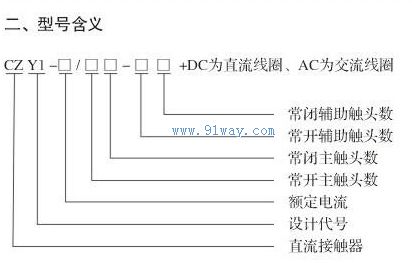 CZY1系列直流接觸器型號說明