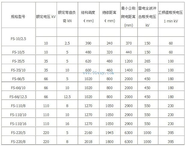 FS-10/2.5型10KV復合橫擔絕緣子技術參數表