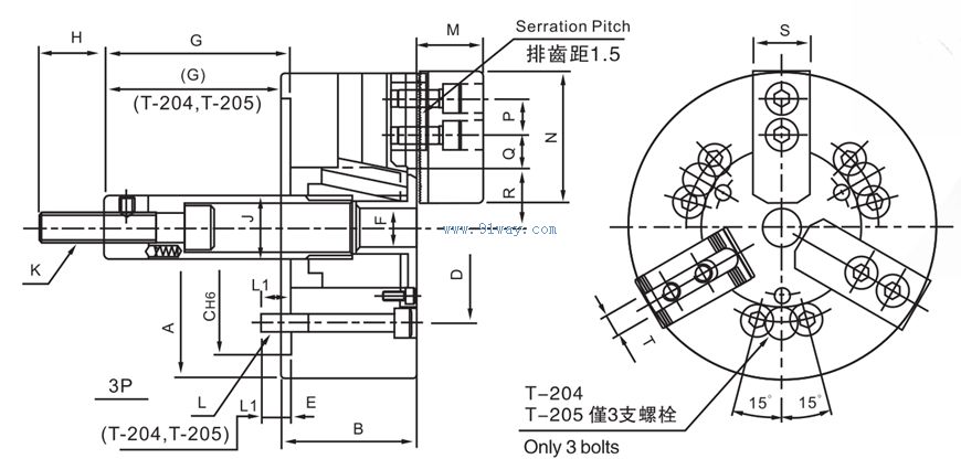 T系列中實(shí)動(dòng)力夾頭(三爪高速中實(shí)型)三爪楔形中實(shí)動(dòng)力夾頭。 夾頭滑動(dòng)面經(jīng)硬化處理及精密研磨,并直接潤滑。 高剛性、高精度及高轉(zhuǎn)速。
