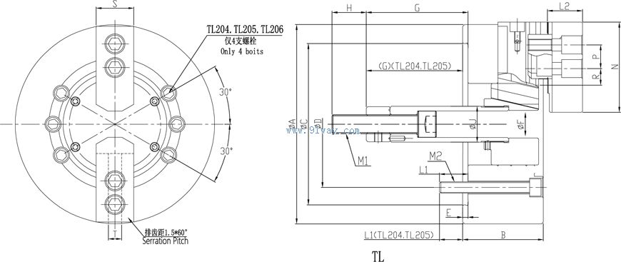 | 產品名稱: | TL系列二爪中實油壓夾頭 | |||||