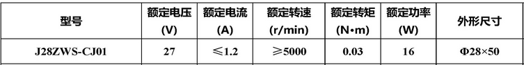 | 產(chǎn)品名稱: | J28ZWS-CJ01型無(wú)刷直流電動(dòng)機(jī) | |||||