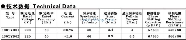 130TDY01,130TDY02型單相永磁低速同步電動機