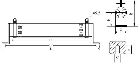 | 型號 | 功率(W) | L | L1 | L2 | h | b | c | d | e | 安裝 螺絲 |