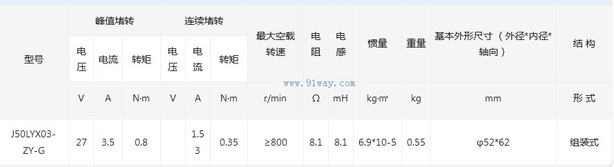 J50LYX03-ZY-G型永磁式直流力矩電動機